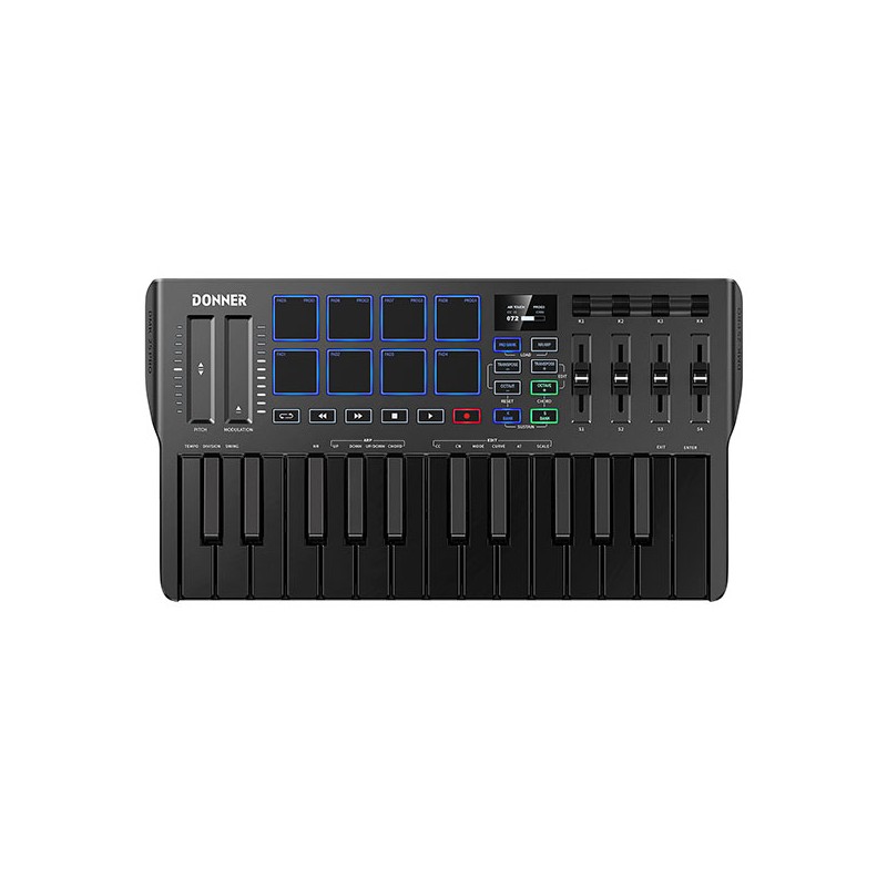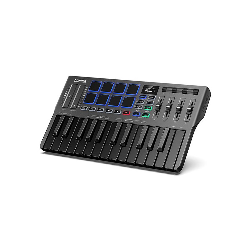 Donner DMK-25 PRO to wszechstronny kontroler MIDI o intuicyjnej obsłudze, dynamicznych funkcjach kreatywnych i wysokiej kompatybilności z popularnymi platformami DAW. Dzięki wbudowanym narzędziom i edukacyjnym aplikacjom idealnie sprawdzi się wśród początkujących i średniozaawansowanych twórców muzyki.