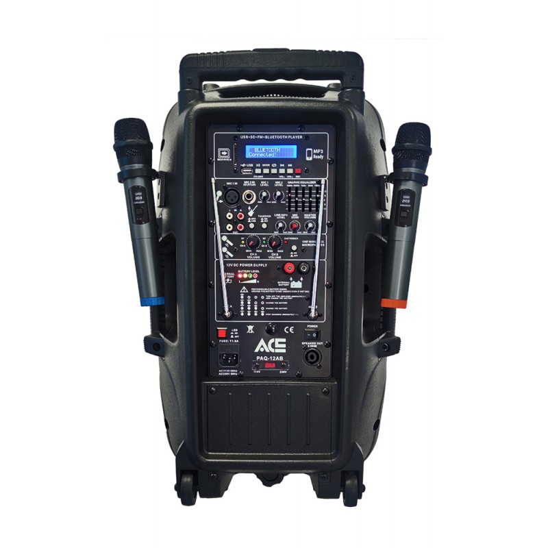 Aktywny dwudrożny, przenośny system nagłośnieniowy PA z wbudowanym akumulatorem oraz podwójnym mikrofonem bezprzewodowym. Wbudowany odtwarzacz MP3,USB/SD, BLUETOOTH; tuner FM. Włączanym oświetleniem LED głośnika niskotonowego.