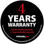 2 lata standardowej gwarancji + 2 lata rozszerzonej gwarancji po zarejestrowaniu produktu w przeciągu 6 miesiącu od zakupu na stronie: PROEL - przejdź do strony