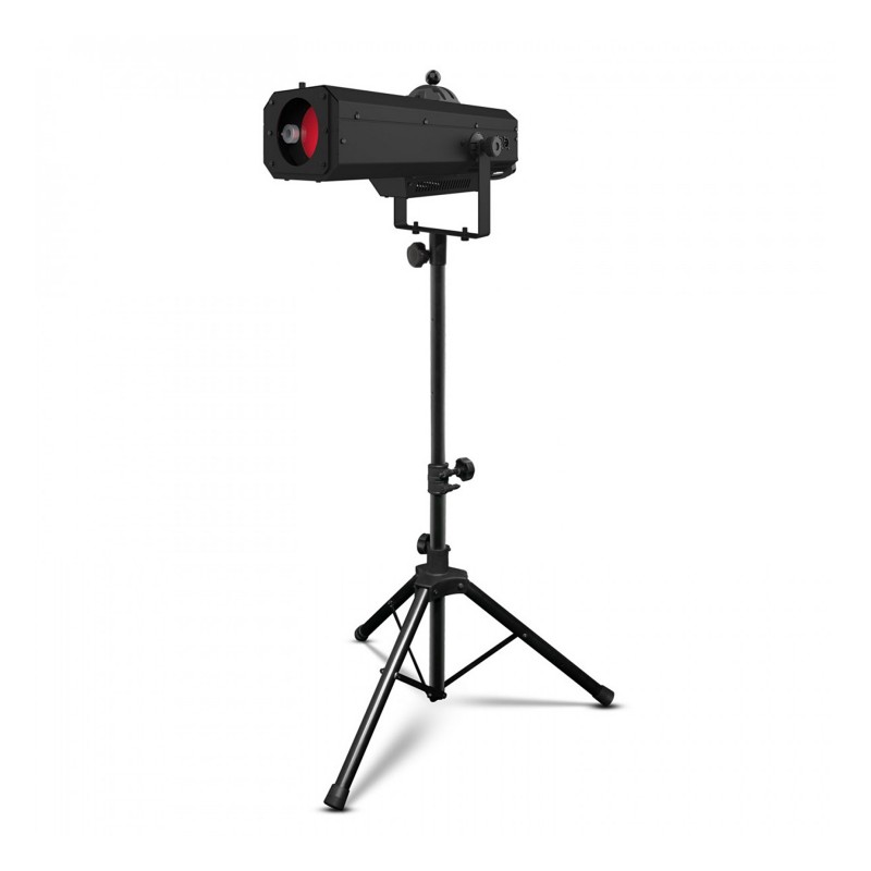 Chauvet DJ LED Followspot 120ST to przenośny followspot LED, który emituje wąską wiązkę światła zasilaną przez jasną diodę LED o mocy 120 W, aby podświetlić aktorów z dużej odległości. Wbudowany filtr CTO obniża temperaturę barwową, dopasowując ją do lamp wolframowych. Opcje sterowania obejmują DMX i tryby ręczne, a płynne ściemnianie LED upraszcza wygaszanie. Mechaniczna przysłona pozwala skupić światło tam, gdzie jest ono potrzebne, zmniejszając średnicę wiązki i zapewniając cichą pracę dzięki szybkiemu elektronicznemu stroboskopowi bez ruchomych części. Statyw dołączony do zestawu pozwala na rozłożenie i złożenie urządzenia w kilka sekund.