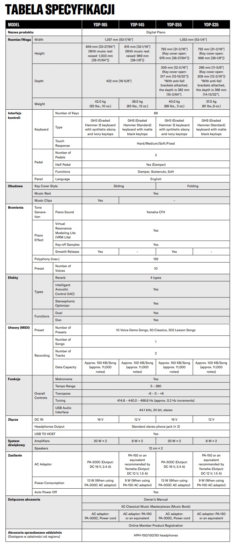 Forma YDP-165 opiera się głównie na liniach prostych, jest elegancka i prezentuje stylowe kształty, typowe dla fortepianu. Obudowa pianina ma niewielką głębokość , dzięki czemu można je umieścić w każ dym pomieszczeniu, a stylowy wygląd doda szyku każdej przestrzeni. Dodatkowo można wybierać spośród wielu wariantów kolorystycznych, aby znaleźć ten, który pasuje do wnętrza i osobistego gustu.