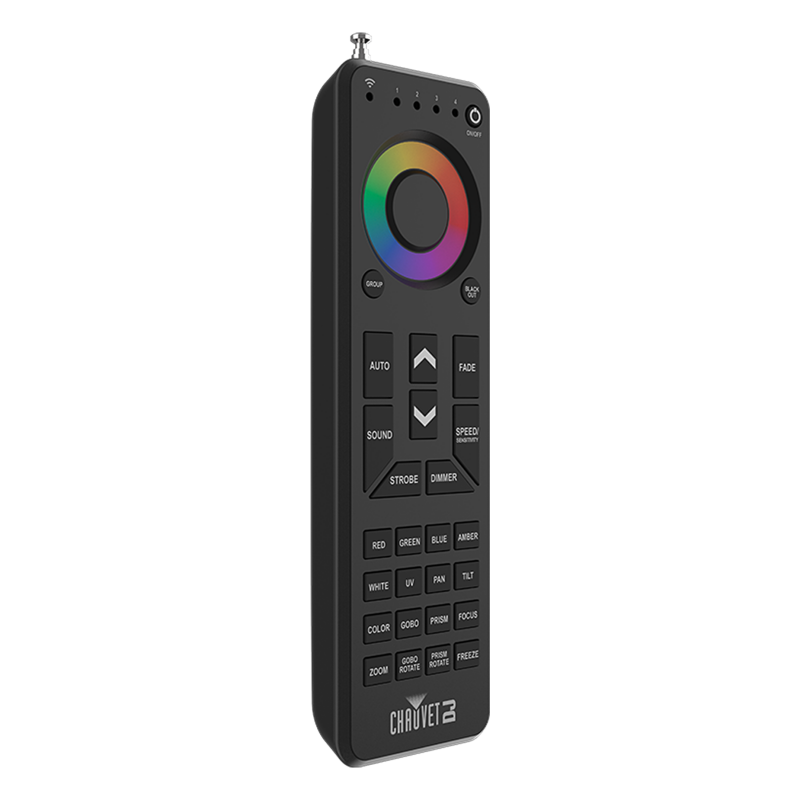 Bezprecedensowa moc sterowania oświetleniem jest w zasięgu ręki dzięki RFC-XL, ręcznemu pilotowi zdalnego sterowania do kompatybilnych opraw oświetleniowych z obsługą RF. Sygnał RF jest wielokierunkowy i nie wymaga działania w linii wzroku. Chauvet DJ RFC-XL współpracuje z różnymi typami urządzeń, takimi jak ruchome głowice, i umożliwia jednoczesne sterowanie nawet 4 różnymi grupami urządzeń. Gumowane i podświetlane przyciski zapewniają dostępność w ciemnym otoczeniu, a wygodne koło wyboru kolorów pozwala wybrać odpowiednie kolory jednym ruchem palca. Teleskopowa antena zapewnia, że sygnał dotrze do celu.