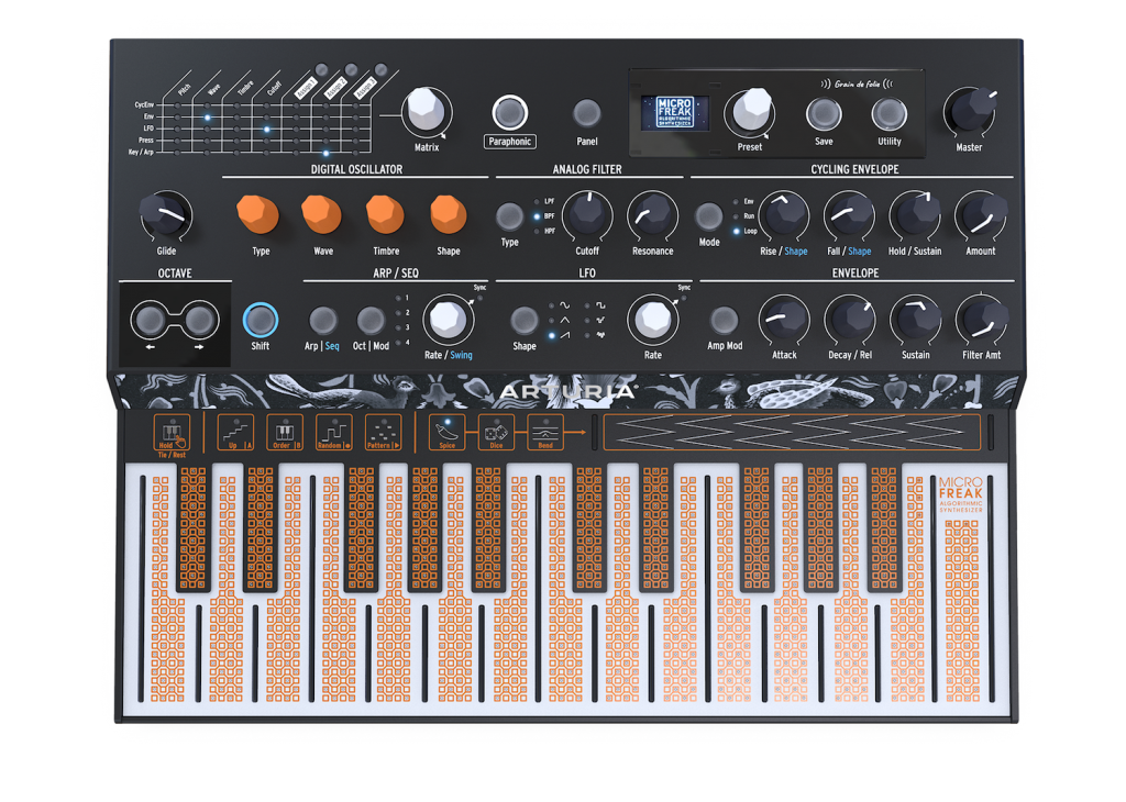 Arturia MicroFreak to profesjonalny syntezator, a do tego nietypowy i wyjątkowy instrument. Owoc pracy inżynierów z Arturii łączy syntezę wavetable i cyfrowe oscylatory z analogowymi filtrami. Posiada unikalną płaską klawiaturę z polifonicznym aftertouch. Do tego udostępnia ciekawy generator randomizacji do sekwencji i arpeggiator. To nie rewolucja, to bunt!